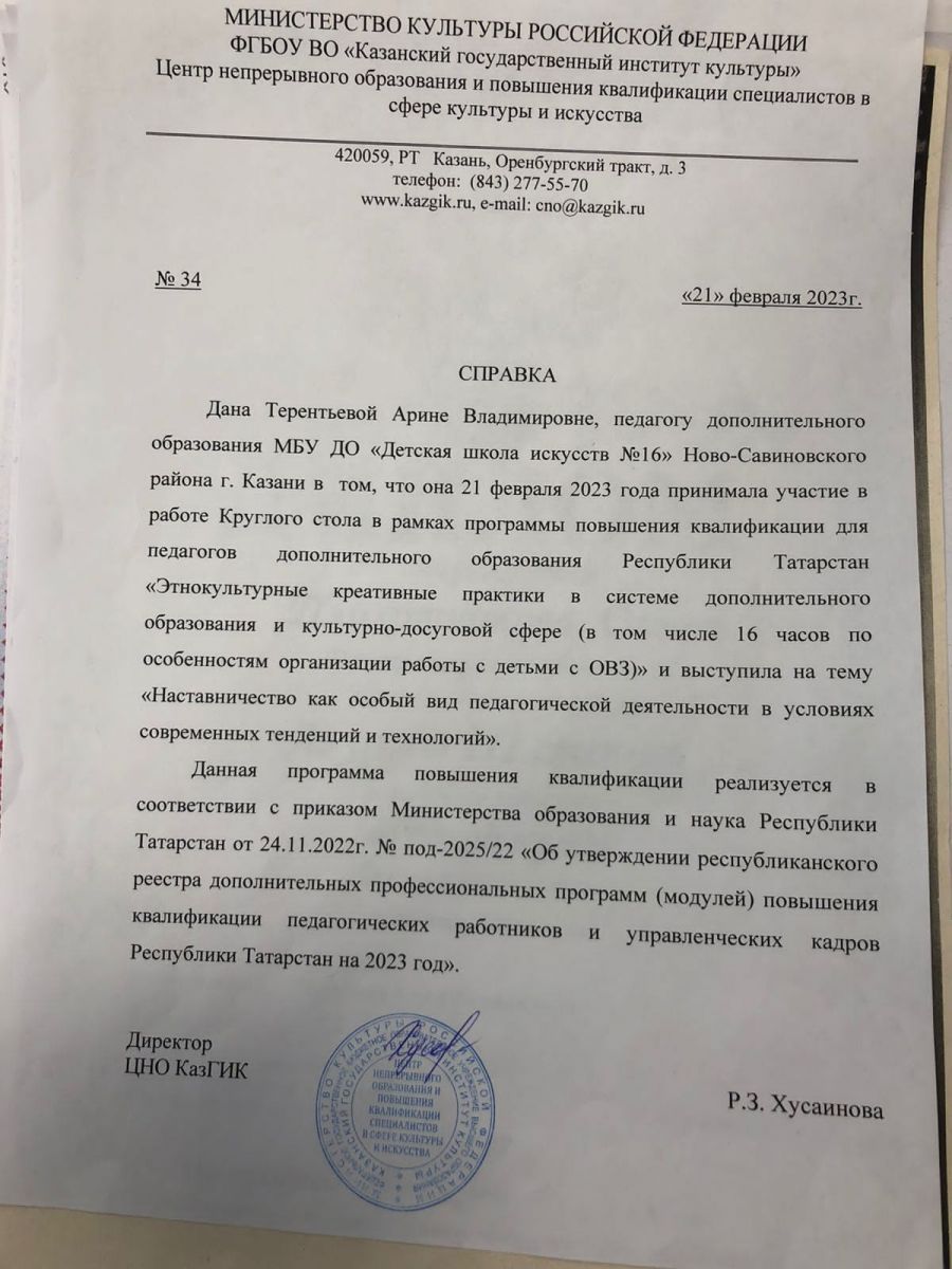 10.Терентьева А.В. - справка об участии в Круглом столе в рамках программы повышения квалификации