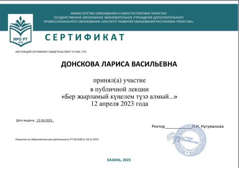 28.Донскова Л.В. - сертификат об участии в публичной лекции