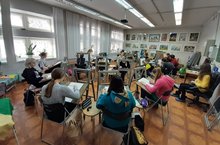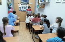 Ученики ДХШ №3 слушают рассказы о жизни и искусстве РТ на творческой встрече с профессиональным художником Хузиным РФ. Ученики отметили очень интересный рассказ художника, и высокий профессионализм представленных работ.