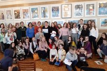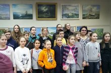 Ученики ДХШ №3 и родители на персональной выставке преподавателя Валиуллиной Аиды Тагировны.