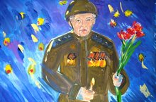 Отказавшись от помощи учителя, сама добралась до школы. Учитель с ребятами подготовились, купили пироги к чаю, сделали небольшую выставку своих рисунков посвященных узникам концлагерей.