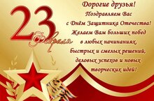Дорогие наши мужчины, поздравляем Вас с праздником мужества, благородства и чести – с Днём защитника Отечества! Желаем Вам счастья, жизни наполненной миром, крепкого здоровья, благополучия, успехов и любви.