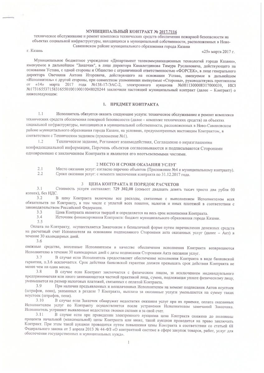 Контракт техническое обслуживание и ремонт средств пожарной безопасности