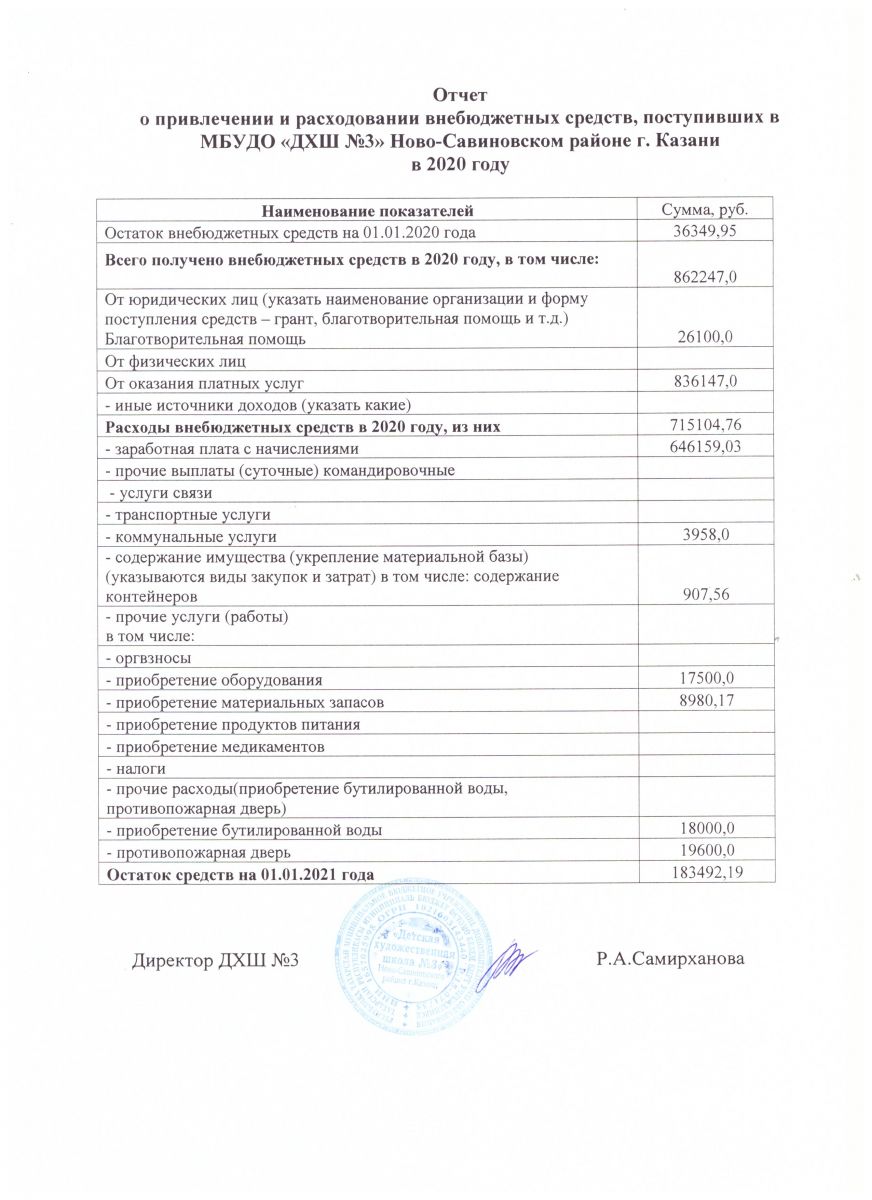 Отчет о привлечении и расходовании внебюджетных средств за 2020г