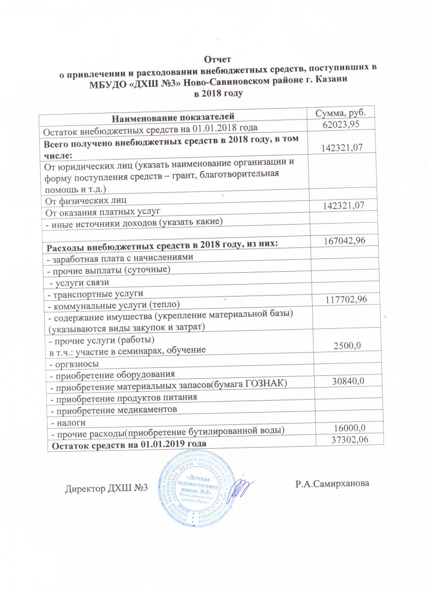 Отчет о привлечении и расходовании внебюджетных средств за 2018г