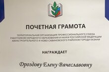 По уже сложившейся традиции, слова благодарности прозвучали не только в адрес председателей, но и присутствущих в зале их помощников. Каждый из них отдал не один десяток лет отрасли образования. Почетная грамота за многолетний добросовестный труд была вручена методисту ЦДТ Дроздовой Елене Вячеславовне. -