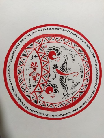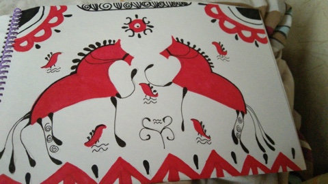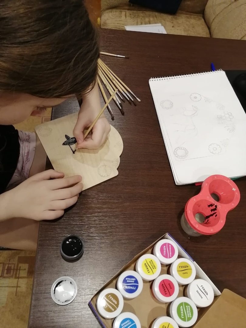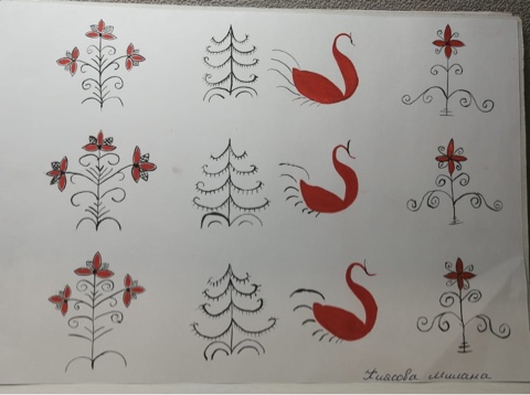 На объединении «Радуга творчества» педагога Машуковой Н. Г. учащиеся совершенствуют тему мезенской росписи.