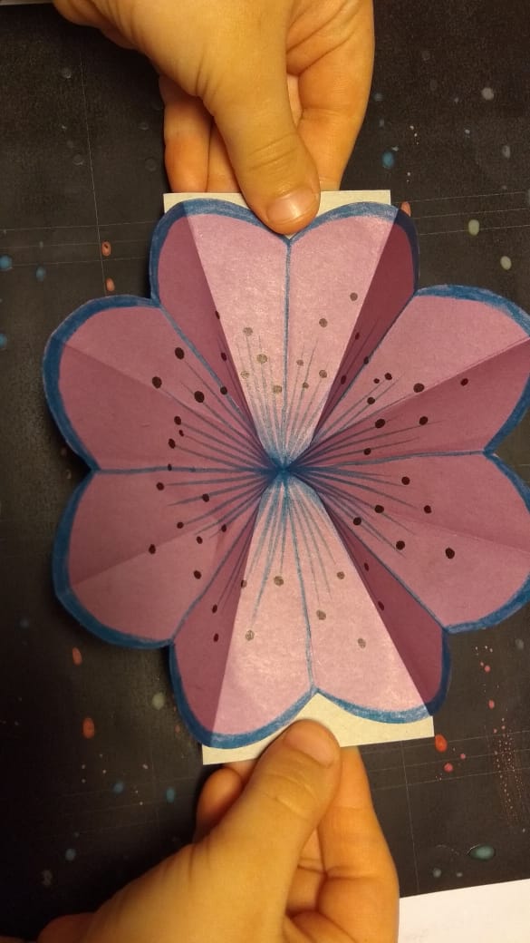 Очень активно учащиеся объединения прикладного отдела «Очумелые ручки» педагога — Шагвалеевой Эвелины Фанисованы участвовали на занятии по теме «Открытка. Раскрывающийся цветок» и прислали много выполненных чудесных работ. У всех получилась настоящая 3D открытка с с раскрывающимся по центру цветком.