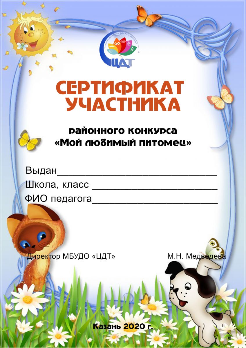 Сертификат учпстника районного конкурса "Мой любимый питомец"