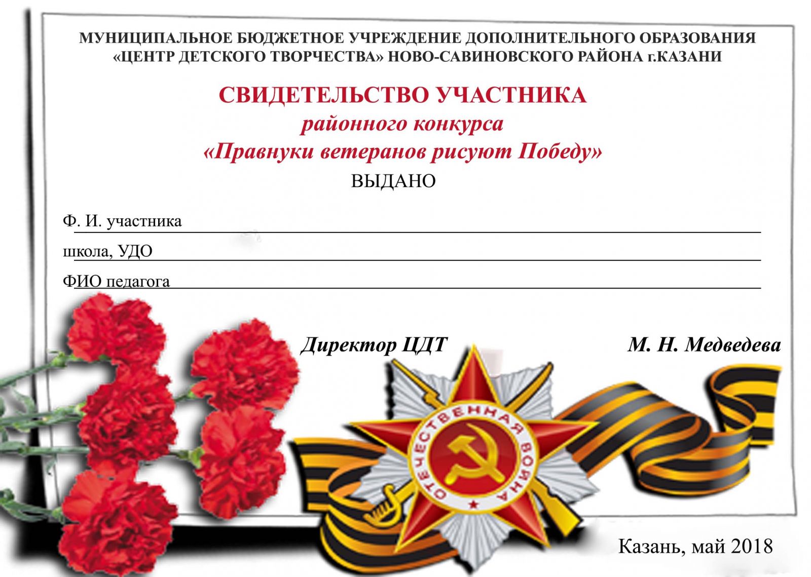 Опубликовано: 21.05.2018Согласно плана работы Центра детского творчества на 2017 – 2018 учебный год с 16 апреля по 14 мая 2018 года в Центре детского творчества Ново-Савиновского района г.Казани проводился районный конкурс рисунков «Правнуки ветеранов рисуют Победу». Целью данного конкурса является выявление и поддержка творческой инициативы педагогов и детей. На конкурс было представлено 75 работ учащихся школ района № 9, 23, 31, 43, 85, 91, 103, 143, 146, 165, 170, 179, лицей 177 и воспитанников УДО: ДМШ № 11, ЦВР и ЦДТ.