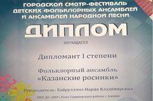 Фольклорный ансамбль «Казанские росинки» под руководством педагога Хайруллиной М.В. стали Дипломантами 1 степени в Городском смотре-фестивале детских фольклорных ансамблей и ансамблей народной песни. Поздравляем с дебютом и желаем им дальнейших побед!!!
