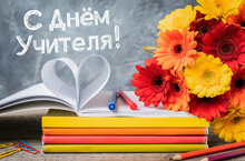 От всей души поздравляем с Днём Учителя! Пусть Ваш труд всегда ценится, пусть Ваши старания и надежды непременно будут оправданы, пусть, благодаря Вам, дети получают крепкие знания, пусть в Вашей жизни всегда присутствует волшебный мир добра и счастья!