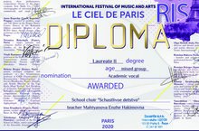 Хоровой коллектив «Cчастливое детство» принял участие в Международном конкурсе вокалистов «Le Ciel de Paris». Педагог награжден Дипломом Лауреата II степени в номинации Академический вокал.