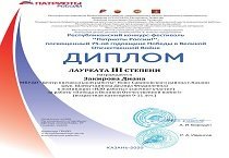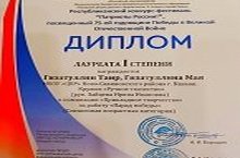 Учащаяся объединения «Рисуем мультики» Закирова Диана награждена Дипломом Лауреата III степени в номинации «ИЗО работы» (заочное участие) за работу «Победа в Великой Отечественной войне!»