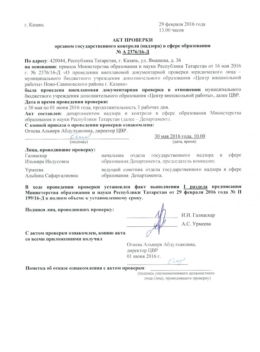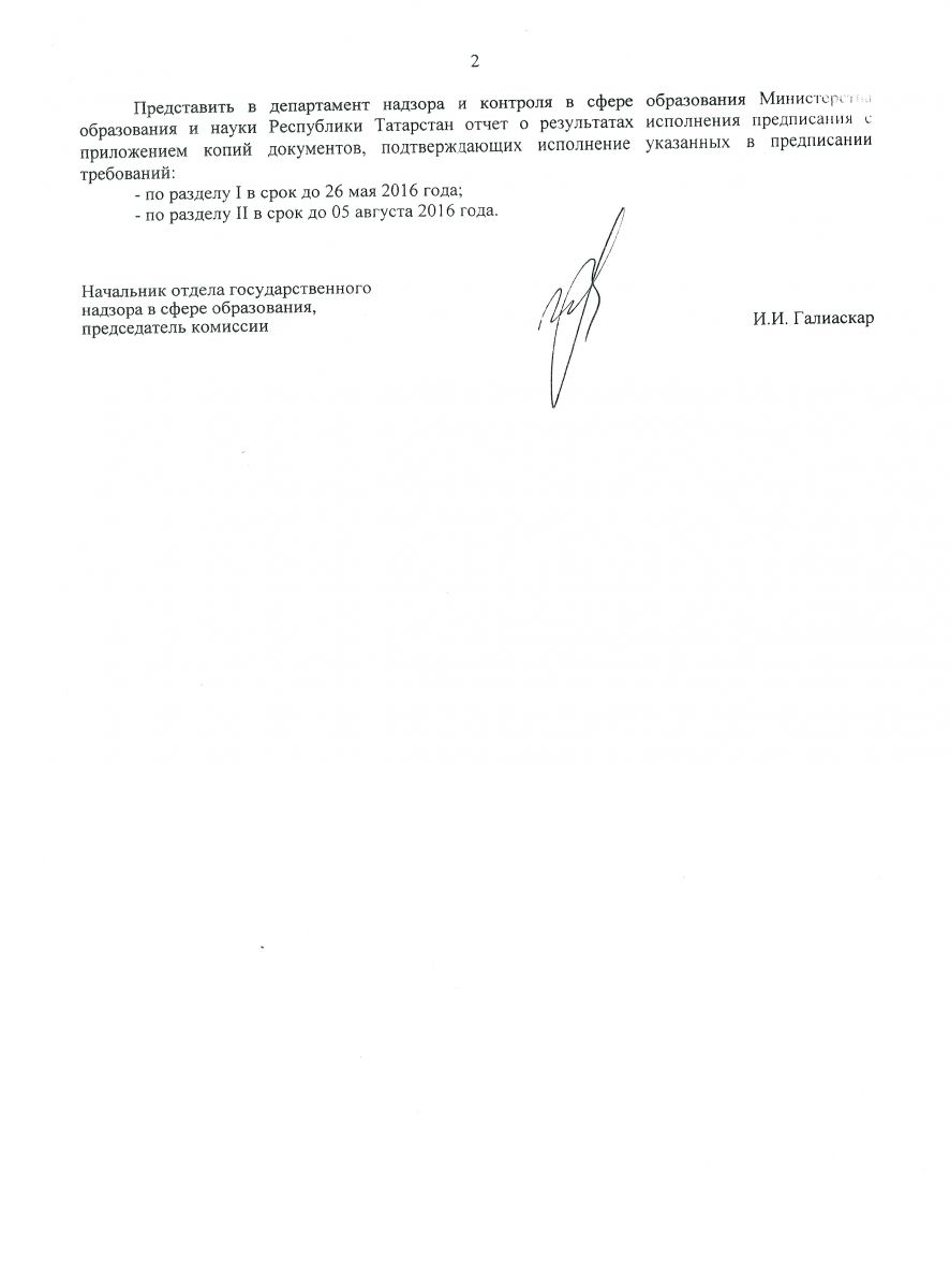 предписание Департамент контроля и надзора 2016г. 1 лист