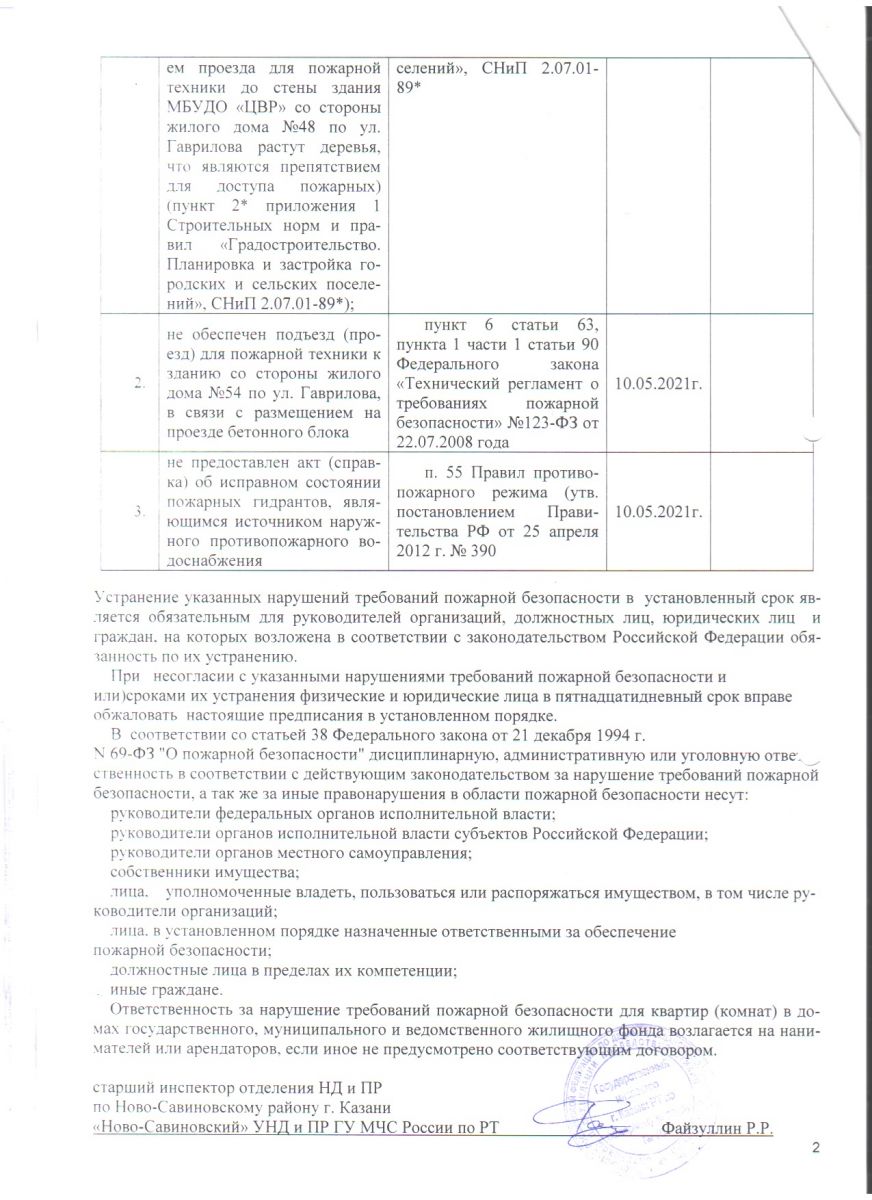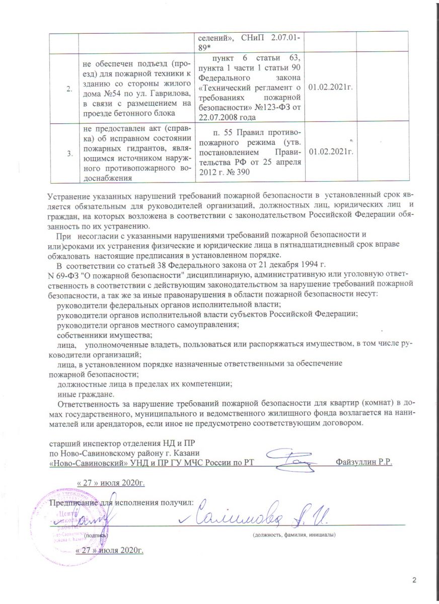 Предписание об устранении нарушений требований пожарной безопасности