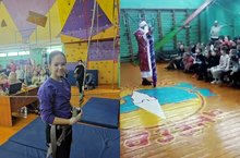 В завершении соревнования всех детей поздравил Дед Мороз и подарил подарки. -