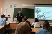 З.Т. Сайфуллин, сотрудник мемориала «Книга Памяти», рассказал ребятам много интересных фактов из жизни главного голоса Советского Союза. Ю.Б. Левитан – человек, голос которого знаком всей планете. Главный диктор «всех радиостанций Советского Союза» на протяжении десятилетий сообщал миллионам людей об эпохальных событиях в стране, был символом надежды и веры в Победу в Великой Отечественной войне. Голос Ю.Б. Левитана до сих пор остается эталонным для дикторов всего мира. Ребята услышали в записи голос диктора Всесоюзного радио Ю.Б. Левитана, который объявил о Победе 9 мая 1945 года.