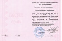 С 14 по 16 мая 2018 года директор МБУДО ДДЮТиЭ "Простор" Фазлиев Р.М., заместитель директора по УВР Дерзаев С.В., заместитель директора по АХЧ Сабанина Т.А., заведующая методическим отделом Аксанова Н.А., заведующая краеведческим отделом Асхадуллина А.Т. прошли обучение в Автономной некоммерческой организации "Центр дополнительного профессионального образования и сертификации "Региональное агентство развития квалификаций" по программе "Специальная оценка условий труда" в объеме 24 часов.