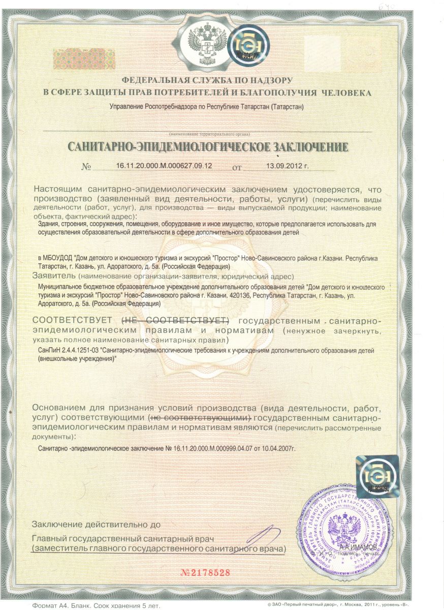 Санитарно-эпидемологическое заключение Роспотребнадзора