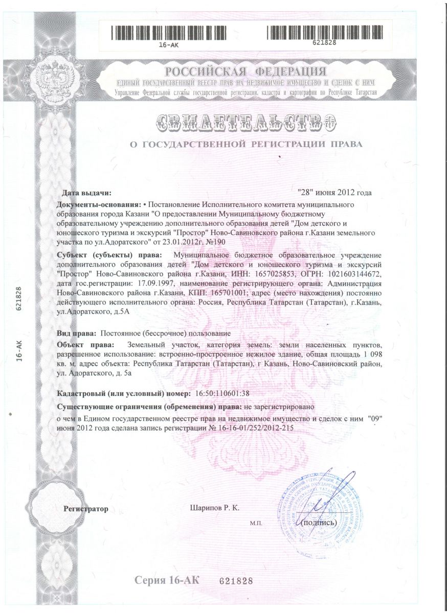 Муниципальное бюджетное учреждение дополнительного образования «Дом детского и юношеского туризма и экскурсий «Простор» Ново-Савиновского района г. Казани