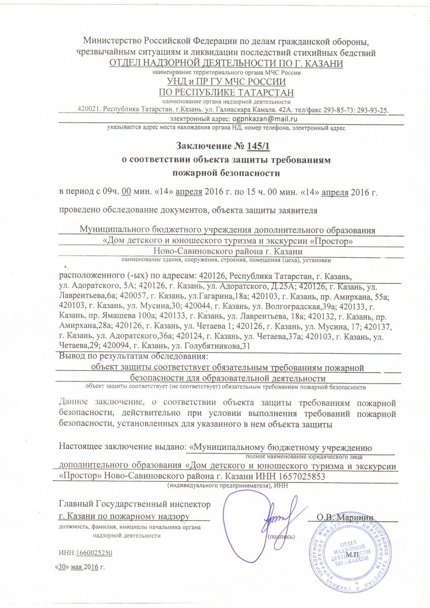 Заключение о соответствии объекта требованиям пожарной безопасности