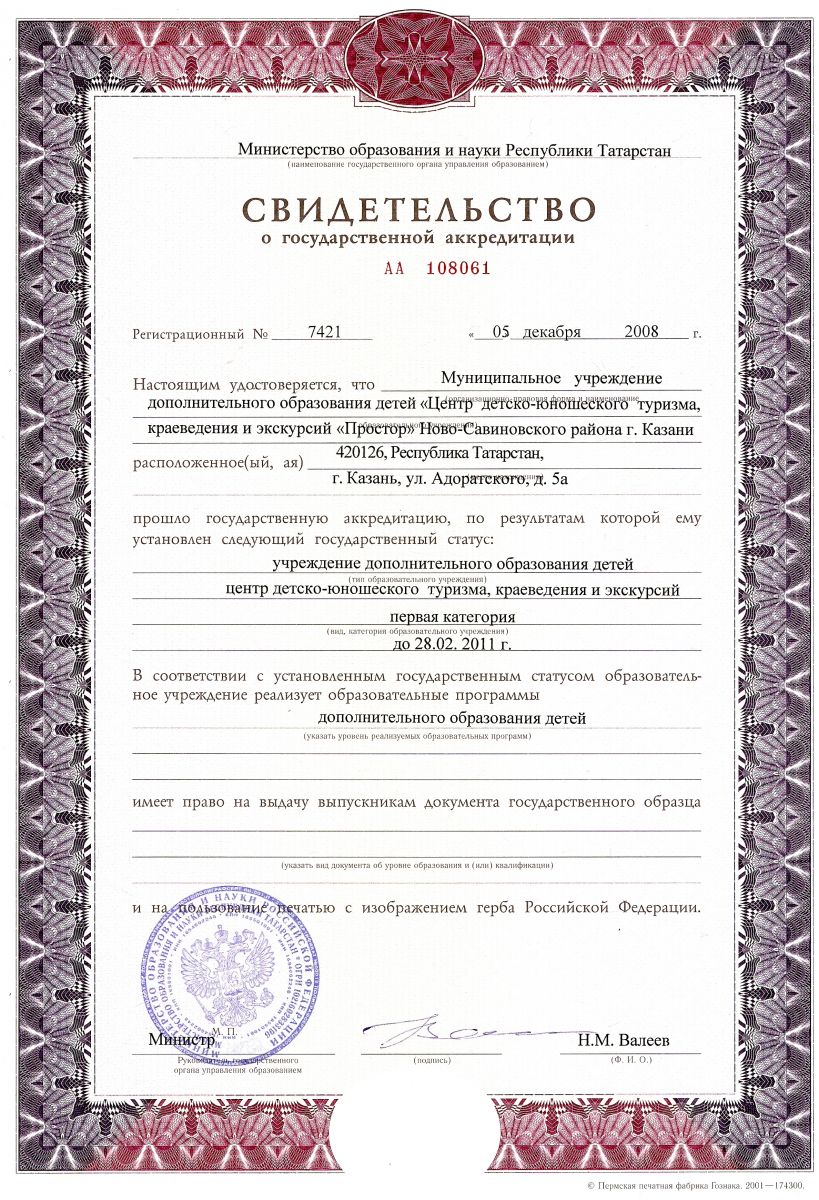 Свидетельство о государственной аккредитации