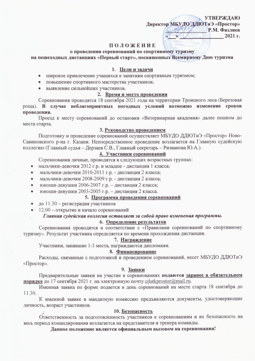 3. Соревнования по спортивному туризму на пешеходных дистанциях "Первый старт", посвященных Всемирному Дню туризма. Дата проведения: 18.09.2021
