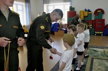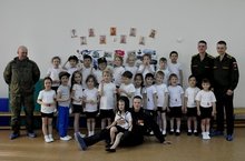 Капитан 1 батальона курсантов Коломин Александр Викторович и курсанты Казанского высшего танкового командного Краснознаменного училища Цырин И. Н., Щербаков Е.А., Мушлантов Н.П., прибыли на военно-спортивный праздник в МАДОУ №192 Ново-Савиновского района г.Казани в качестве гостей и судейской бригады. После подведения итогов и награждения, все участники праздничного мероприятия посвященного Дню Победы в ВОВ сделали общее фото. Затем будущие командиры танковых войск продолжили общение со старшими дошкольниками в неформальной обстановке, дали примерить шлем танкиста, рассказали о сухом пайке и ответили на множество вопросов любознательных мальчишек и девчонок. А закончилось праздничное мероприятие посадкой саженцев туи и черемухи на участке группы. Теперь ребята на долго запомнят праздник 9 мая. А может через десяток лет кто-то будет служить под командованием сегодняшних курсантов танкового училища. Детям мероприятие очень понравилось, все расходились домой в прекрасном настроении!