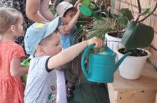 Даже небольшой уголок природы приносит с собой большие возможности для естественного развития детей, для гармонизации вашей жизни и ее улучшения. Наши комнатные растения традиционно на лето, перехали на одну из прогулочных веранд. Ребята с большим удовольствием рыхлят и поливают почву, опрыскивают листочки. Ухаживая за растениями ребята постигают азы биологии и экологии, углубляют и расширяют свои представления о происходящих процессах при взаимодействии человека и природы, а так же учатся экологически гуманному осознанному отношению ко всему живому.
