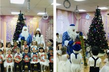 С Новым годом сегодня поздравляли наших ребят Дед Мороз и Снегурочка. Новогодние праздники в средней, старшей группах прошли в саду. Елочка зажглась огнями, снежинки летели вокруг, к нам в гости приехали сани, а в них Дед Мороз - наш друг!