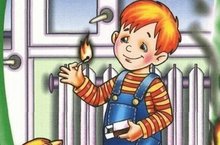 В нестандартной ситуации ребенок не можетвести себя адекватно, в виду своего малолетнего возраста, тем более если ему не рассказывали что нужно делать в той или иной ситуации.Поэтому при возникновении пожара они начинают совершать неправильные действия, например прятаться под кроватью или в шкафу или же при возгорании на них одежды, начинают бегать, думая, что огонь погаснет, хотя этого категорически делать не нужно. В этом случае сразу же необходимо скинуть одежду или же упав на землю, нужно чтобы кто-нибудь накинул на горящую одежду плотную ткань, перекрыв тем самым доступ кислорода огню.
