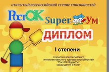Поздравляем воспитанников старшей группы и воспитателя - Хайрутдинову Гульназ Анваровну с победой во Всероссийском турнире способностей "РостОК SuperУМ". Потапов Артем- дипломант 1 степени, Юсупова Азалия - дипломант 2 степени, Шайхутдинов Айдар - дипломант 2 степени, Гатауллина Алиса - дипломант 3 степени. Молодцы!!!