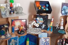 Была оформлена тематическая выставка космических экспонатов. Воспитанники со своими мамами и папами смастерили замечательные «космические» поделки. Чего среди них только нет: и ракеты, и летающие тарелки, планеты Солнечной системы и многое другое.