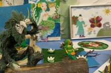 Дети вместе с родителями сделали различные поделки, нарисовали рисунки. Получилась яркая выставка. Кого там только нет : и Шурале, и Водяная, и другие известные герои его сказок. А главное - что родители вместе с детьми проявили свое творческое начало. Использовали различные материалы для поделок. Ничего так не сближает детей и родителей, как совместная деятельность. В родительских уголках воспитатели представили информационный материал о жизни и творчестве Габдуллы Тукая.