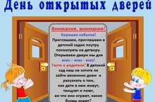 Уважаемые родители!!! С 16 по 20 апреля пройдет неделя открытых дверей. Приглашаем Вас на открытые мероприятия с детьми в форме квест-игр, развлечений, КВНов. Расписание мероприятий будут вывешены в дошкольных группах.