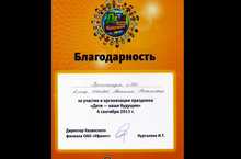 Казанкий филиал ОАО "Уфанет" выражает благодарность МАОУ "Прогимназия № 360" в лице Ионовой Н.Н. за участие в организации праздника "Дети - наше будущее" 4 сентября 2011 г.