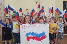 12 июня в нашей стране отмечается День России. День России – это отличный повод рассказать детям ещё раз об истории нашей огромной и самой красивой в мире многонациональной страны, о многообразии народных традиций, совершить интересные увлекательные путешествия по просторам нашей необъятной Родины. Во время подготовки ко Дню России в нашем дошкольном учреждении проводились различные мероприятия, направленные на воспитание у наших воспитанников нравственно – патриотических чувств любви к своей Родине – России.Цель данного мероприятия: развитие у детей интереса, любви к Родине, чувства гордости; воспитание уважительного отношения к символам страны: герб, флаг, гимн России; любви и уважение к малой родине. Педагоги нашего детского сада рассказали детям, что День России – это праздник свободы, мира и добра. Этот праздник символизирует единство всего нашего многонационального народа, напоминает, что все несут ответственность за настоящее и будущее нашей Родины. На гербе России изображен двуглавый орел, головы которого смотрят в разные стороны. Орел обозначает силу. Это значит, что государство, на гербе которого изображен орел, сильное и непобедимое. Почему у орла две головы? Наше государство очень большое и головы орла смотрят на запад и на восток, как бы показывает, что государство большое, но единое. Детям было рассказано, почему наш флаг состоит из трех цветов, и что обозначает каждый цвет.