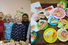 В завершении тематической недели "Продукты питания" в группах прошли занятия по аппликации и лепке. Ребята из старшей группы №7 приготовили из соленого теста, которое сами замесили с воспитателем Ириной Юрьевной. А получились у них и любимые сосиски, пончики, картофель фри и.т.д. Данное занятие формирует у детей представление о полезных и вредных продуктах питания, учит детей понимать в чем польза, а в чем вред некоторых продуктов питания, вызывать у детей стремление употреблять в пищу полезные продукты, вести здоровый образ жизни.