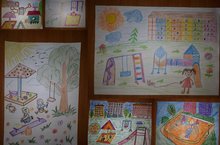 У наших ребят, день начался с конкурса рисунков "Мой двор самый лучший". Ребята взахлёб рассказывали про свой двор, какие там качели и турники, а песочницы так и ждут их, когда они вернуться из детского сада. Рассказывать, каждый может, подумали наши педагоги и предложили им нарисовать. Вот смотрите, что у нас получилось