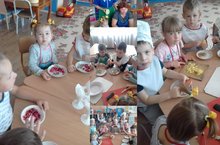 На тематической неделе "Овощи" ребята совместно с педагогами решили не только побеседовать, нарисовать, слепить, но и приготовить настоящий осенний витаминный салат из сезонных овощей. Все очень старались, у всех были свои обязанности. А в итоге все поели вкусный салат