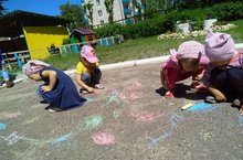 И в нашем детском саду, прошли мероприятия для детей. Рисование мелками на асфальте, эстафета, песни и танцы.