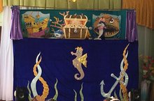 К нам сегодня приезжал театр "Аленкины сказки" с театральным представлением " В поисках морских сокровищ"