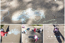 В замечательный солнечный денек ребята детского сада украсили дорожки красочными рисунками на тему "На улице нашего города" (по профилактике ДДТТ).