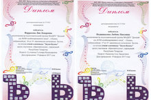 Хорошие результаты показали наши воспитанницы. По итогам очной олимпиады "Звуки-Буквы", которая прошла в НОУ ДПО "Центр социально - гуманитарного образования", победителями стали Фаррахова Лия (подготовительная группа №2, воспитатель Султанова Г.И.) и Подшивалова Любовь (подготовительная группа №2, воспитатель Камалова А.З.).