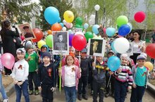 Накануне 9 мая в детском саду прошли праздники в старшей и подготовительной группах, посвященные дню Великой Победы. Праздник был подготовлен с целью формирования у детей знаний о Великой Отечественной войне, обогащения знаний дошкольников об истории своей страны, воспитания чувства гордости за героизм нашего народа, воспитания устойчивого интереса к армии. В программу мероприятия вошли песни о празднике победы, о мире, о солдатах, танцы, стихи о войне, о бессмертном подвиге защитников Отечества.
