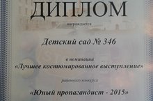 Наш детский сад участвовал в районном конкурсе "Юный пропагандист-2015"и стал обладателем диплома в номинации "Лучшее костюмированное выступление"