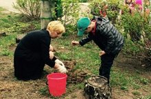 Внуки сажают сирень под окном!