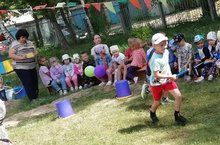 Дети и воспитатели сами были участниками этого развлечения на улице.