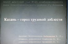 Наши педагоги приняли участие в районном конкурсе "Казань - город трудовой доблести". В номинации "Презентация" наш детский сад занял 1 призовое место!!!